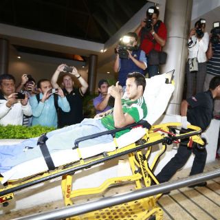 León, que se fractura la tibia y peroné de su pierna derecha en el partido amistoso entre México y Ecuador, fue ingresado al hospital en el que será intervenido quirúrgicamente por el Dr. Rafael Ortega.