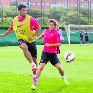 BARCELONA, ESPAÑA (28/MAY/2015).- El delantero uruguayo Luis Suárez, entrenó ayer con sus compañeros en la Ciudad Deportiva, y, aunque lo ha hecho sin el alta médica, su presencia el sábado en la Final de la Copa del Rey contra el Athletic de Bilbao en el Camp Nou no parece que vaya a correr peligro.