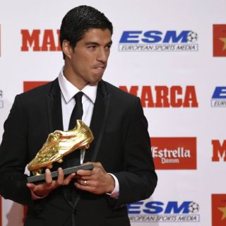Luis Suárez ha recibido el galardón que le acreditaba como máximo goleador de las ligas europeas la temporada pasada.