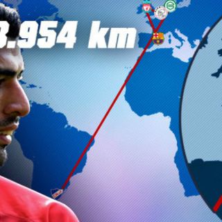 Luis Suárez, que acaba de llegar a la capital catalana procedente de Montevideo, después de que la FIFA haya prohibido expresamente la misma mientras el jugador este sancionado.