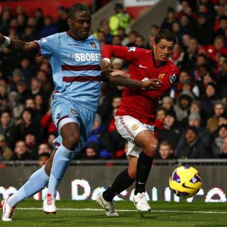 MANCHESTER UNITED (28/NOV/2012).- Manchester United, con el delantero mexicano Javier Hernández, retuvo este miércoles el liderato de la Premier League, al imponerse por la mínima, 1-0, a West Ham en Old Trafford.