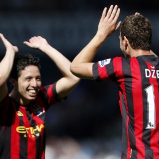 El dominio de los de Mancini se trasladó al marcador en el minuto 34, cuando Dzeko remató de cabeza una jugada que nació de una triangulación en el borde del área entre Nasri y el "Kun".