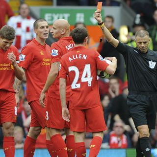 La hinchada local pidió penal por una caída de Suárez en el área, pero el árbitro no la sancionó, al contrario de lo que sí hizo en una falta de Glen Johnson sobre el ecuatoriano Antonio Valencia, que Van Persie envió a gol desde los once metros (2-1, 82).