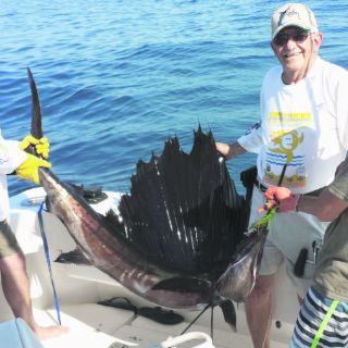 BARRA DE NAVIDAD, JALISCO (26/ENE/2014).- La embarcación “Mapaches Tejanos” se alzó con el triunfo en la edición XXXIX del Campeonato Internacional de Pez Vela, Marlin, Dorado y Atún por equipos, que organiza el Club de pesca de Barra de Navidad en la Costalegre.