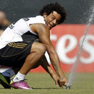 MADRID, ESPAÑA (31/ENE/2012).- Los jugadores del Real Madrid Marcelo Vieira, que será duda para enfrentarse al Getafe, y Xabi Alonso, sufren una "contractura muscular en el bíceps femoral de la pierna derecha" y una "sobrecarga sartorio y psoas iliaco derecho" respectivamente, según informa el club madridista en su página web.