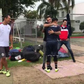 GUADALAJARA, JALISCO (14/JUL/2017).- El Deportivo Guadalajara tuvo una visita especial durante el entrenamiento de hoy: Marco Fabián, actual jugador del Eintracht Frankfurt formado en el Rebaño visitó a sus ex compañeros.