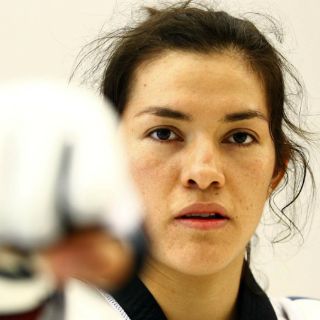 CIUDAD DE MÉXICO (14/JUN/2012).- María Espinoza, campeona olímpica de taekwondo, viajó a Londres para portar el próximo viernes la antorcha de los Juegos Olímpicos, en los que ella será abanderada de México en la ceremonia inaugural del 27 de julio.
