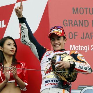 MOTEGI, JAPÓN (12/OCT/2014).- El piloto español Marc Márquez revalidó el domingo su título de campeón del mundo de MotoGP tras terminar segundo en el Gran Premio de Japón por detrás de su compatriota