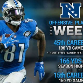 No obstante, aún está lejos de los 11 acumulados por el ex corredor Barry Sanders, líder histórico en distinciones semanales para la franquicia "felina" y miembro del Salón de la Fama.