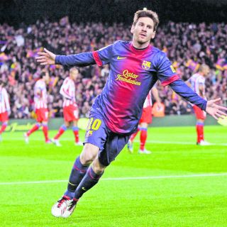 BARCELONA, ESPAÑA (17/DIC/2012).- El crack argentino Lionel Messi marcó este domingo su sexto doblete consecutivo en la Liga Española y el Barcelona goleó como local por 4-1 al Atlético de Madrid para ampliar su ventaja en la cima de la clasificación, cimentando sus opciones de reconquista del campeonato.