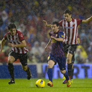 San Mamés vivió un partido trepidante bajo una intensa tormenta. En un choque de ida y vuelta, el Athletic dio primero en una jugada digna del mejor Barcelona a los 20 minutos: Markel Susaeta recibió de Herrera en banda y superó una mala entrada del argentino Javier Mascherano antes de combinar de nuevo con Herrera que desde el pico del área le pegó al balón de rosca, fuera del alcance de Víctor Valdés.