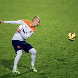 ÁMSTERDAM, PAISES BAJOS (10/NOV/2014).- El delantero holandés Arjen Robben reiteró que sí fue penal la jugada con la que su selección eliminó a México en octavos de final de la