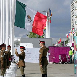 LONDRES, INGLATERRA (28/AGO/2012).- A unas horas de la inauguración de los Juegos Paralímpicos de Londres 2012, la bandera de México ya ondea en la Villa Paralímpica luego de realizarse una breve pero emotiva ceremonia de izamiento.