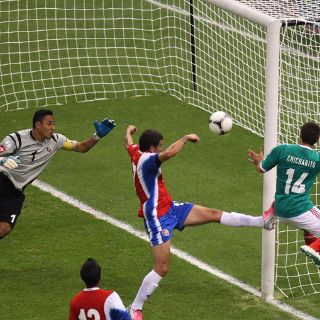 El "Chicharito" Hernández aprovechó un centro por izquierda de Jorge Torres Nilo y peinó la pelota pegado al poste izquierdo para superar al arquero Keylor Navas a los 60 minutos.