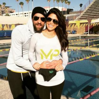 En los soportes de Twitter e Instagram, Phelps envió una foto suya con su prometida y ex reina de belleza Miss California Nicole Johnson, sosteniendo un pequeño par de pantalones cortos de natación para el futuro hijo.