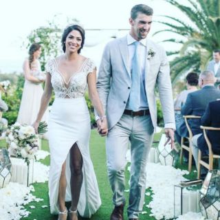 Johnson a su vez compartió una foto de ella vestida de novia caminando por la playa con Phelps.