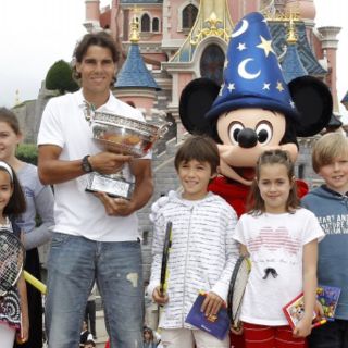 En concreto, el mallorquín estuvo rodeado de Mickey y de seis menores, tantos como trofeos de Roland Garros ha logrado en la tierra batida parisiense.