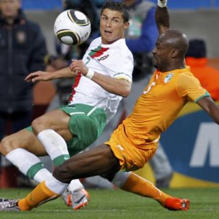 PUERTO ELIZABETH, SUDÁFRICA (15/JUNIO/2010).- Portugal y Costa de Marfil se estrenaron en el Mundial-2010 de Sudáfrica con un empate (0-0), en Port Elizabeth, en el duelo entre los dos teóricos rivales de Brasil por el liderato del grupo G, siendo la noticia más destacada la reaparición de Didier Drogba.