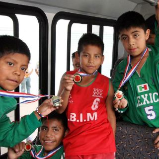 Los jóvenes basquetbolistas llegaron al Aeropuerto Internacional "Benito Juárez" de esta capital, luego de las justas sostenidas en la Copa del Caribe realizada en República Dominicana, donde las niñas se mantuvieron invictas, en tanto que los niños ganaron dos de cuatro partidos sostenidos.