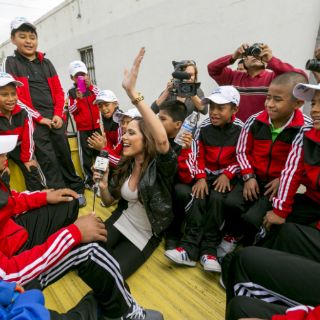 basquetbol descalzos. Ellos desafiaron a los niños triquis a enfrentar un partido en Creel, Chihuahua.