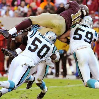 LANDOVER, MARYLAND (04/NOV/2012).- Cam Newton completó 13 pases de 23 intentos para 201 yardas con un touchdown y corrió en ocho ocasiones para 37 yardas y una anotación, con lo que las Panteras de Carolina terminaron con una racha de cinco derrotas al vencer el domingo 21-13 a los Pieles Rojas de Washington.