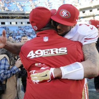 Christensen finalizó con un par de besos a sus bíceps, imitando al quarterback Colin Kaepernick, y se quitó una parte de su túnica para mostrar su jersey de San Francisco.