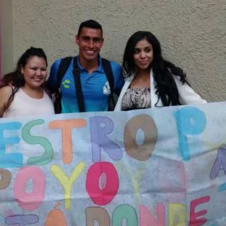 En cuanto el mediocampista nacido en Colima bajó del autobús, las dos chicas desplegaron una manta con un mensaje de apoyo para el jugador, quien de inmediato acudió a ellas para saludarlas y tomarse una foto del recuerdo.