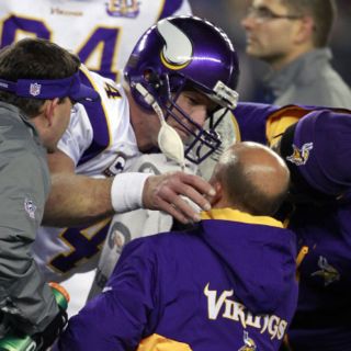 Favre, que amplió su récord a 292 partidos consecutivos en la NFL pese a dos fracturas en el pie izquierdo, condujo a Minnesota a la yarda tres de Nueva Inglaterra antes de ser aplastado por el liniero defensivo Myron Pryor.