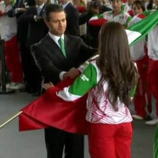 Durante su discurso en la Residencia Oficial de Los Pinos, Peña Nieto pidió a las y los atletas, salir a ganar y poner en alto el nombre de México, queremos "que al concluir la competencia ondeé la Bandera tricolor y se escuche nuestro Himno Nacional".