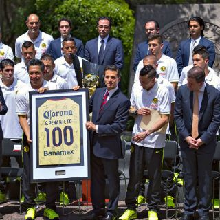 “Me da mucho gusto recibirles y sobre todo poder testimoniarles nuestro reconocimiento, nuestra mayor felicitación en nombre de la afición y en nombre de México, porque ustedes han refrendado su título como bicampeones de la Concacaf y habrán de representar en el Mundial de Clubes a México”, expresó Peña Nieto.