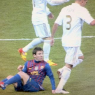 MADRID, ESPAÑA (19/ENE/2012).- Képler Laveran "Pepe", defensa portugués del Real Madrid, ofreció hoy disculpas a Lionel Messi después de pisar su mano durante el partido ante el Barcelona en la Copa del Rey.