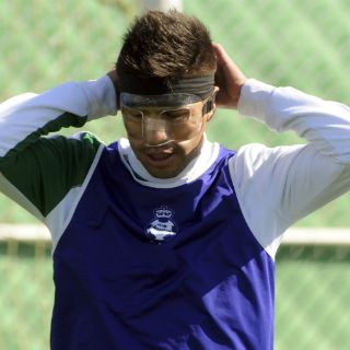 La máscara le cubre la nariz principalmente, para evitar que cualquier contacto o roce durante el juego pueda perjudicar más la parte afectada, aunque el cuerpo técnico decidirá si se arriesgan a exponerlo.
