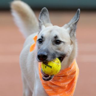 Por orden de su entrenadora Andrea Beckert, los perros corrían y agarraban las pelotas con sus dientes, y luego se sentaban con su entrenadora. La iniciativa fue para promover la adopción de animales callejeros.