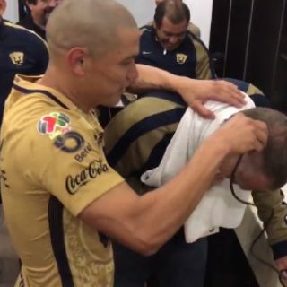 Así lo mostró un video publicado en la cuenta de Twitter del equipo de la UNAM, en el que se ve al capitán Darío Verón mientras rapa al presidente del patronato del Club Universidad, Rodrigo Ares de Parga.
