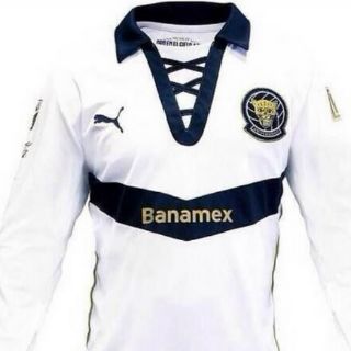 Una camiseta de color blanco con vivos en azul marino y un escudo especial conforman las novedades de la playera con la que la firma Puma se despediría después de cinco años de ser patrocinador de Pumas de la UNAM.