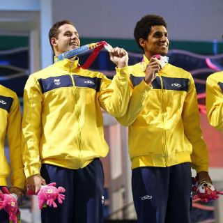 Brasil, con Andre Schultz, Nicolas Oliveira, Leonardo de Deus y Thiago Pereira, hizo 7:21.96 y fue plata, y Venezuela, con Daniele Tirabassi, Cristian Quintero, Crox Acuña y Marcos Lavado (7:23.41), bronce.