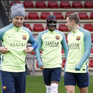 El brasileño entrenó con una máscara especial para cuidar la zona afectada y podrá ser considerado por el técnico Luis Enrique en el duelo ante el PSG.