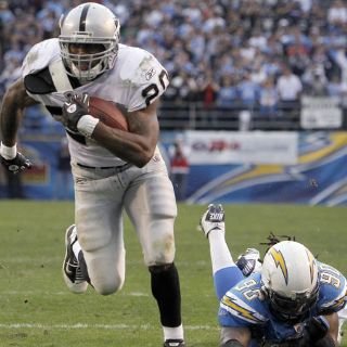 SAN DIEGO, ESTADOS UNIDOS (05/DIC/2010).- Jason Campbell acarreó el balón para un touchdown y lanzó un pase para conseguir otro en tanto Darren McFadden corrió el balón para 97 yardas y los Raiders de Oakland capitalizaron los errores de los Cargadores de San Diego para vencerlos el domingo por 28-13.