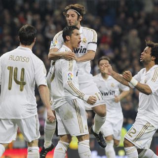 MADRID, ESPAÑA (22/ENE/2012).- El Real Madrid venció este domingo al Athletic Bilbao (7º) por 4-1, con dos goles de penal marcados por Cristiano Ronaldo, en la 19ª jornada de la liga española, y mantiene una ventaja de cinco puntos sobre el Barcelona, que ganó en Málaga (4-1) con tres tantos de Leo Messi.