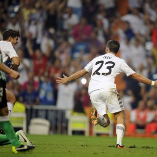 MADRID, ESPAÑA (18/AGO/2013).- Un cabezazo de Isco Alarcón a tres minutos del final, dio el triunfo a un Real Madrid que inició su reconversión con dudas, en el estreno oficial de Carlo Ancelotti, remontando a un Real Betis brillante que fue de más a menos y dejó escapar una gran oportunidad de conquistar el Bernabéu (2-1).
