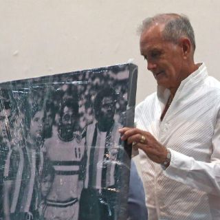 Entre aplausos y porras de sus familiares y amigos más allegados, Calderón González recibió una placa conmemorativa en reconocimiento a su carrera, además de una fotografía enorme en la que figura al lado del astro brasileño Edson Arantes do Nascimento “Pelé”, con quien tuvo la fortuna de compartir la cancha.