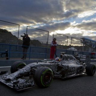 JEREZ DE LA FRONTERA, ESPAÑA (03/FEB/2015).- Red Bull ha llamado más la atención en las pruebas previas a temporada de Fórmula Uno por el llamativo diseño de la pintura del auto que por su velocidad en la pista.