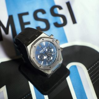 Este reloj de pulsera es el número diez -en honor al número que el futbolista lleva en sus camisetas- del modelo Royal Oak Chronograph Leo Messi, una serie limitada de sólo cien piezas y que fue dedicada al jugador.