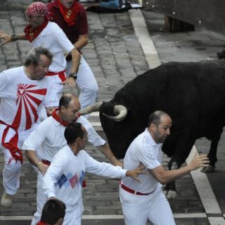 PAMPLONA, ESPAÑA (11/JUL/2011).- Una persona resultó lesionada en el quinto encierro de las fiestas de San Fermín, que por lo demás ha sido un evento rápido y con saldo blanco.