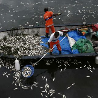 Retiran 37 toneladas de peces muertos de laguna olímpica de Río