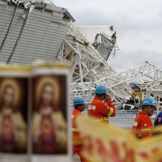 El hecho ocurrió luego de que una grúa cayera sobre el techo del estadio provocando el derrumbe de una parte del muro, lo que causó el deceso de dos trabajadores, por lo que se guardaron días de luto y se frenaron las labores en la estructura.