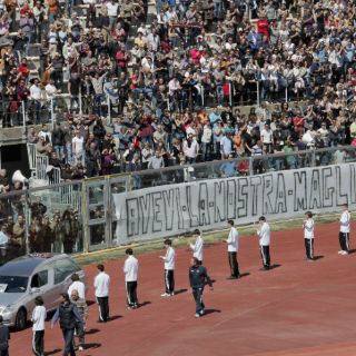 ROMA, ITALIA (17/ABR/2012).- Los aficionados del Livorno rindieron hoy un homenaje al centrocampista italiano Piermario Morosini, quien falleció el pasado sábado a los 25 años tras desplomarse en un encuentro de la Segunda División (Serie B) entre el equipo toscano y el Pescara.