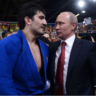 Después de saludar y abandonar el tatami con una bandera rusa colgada al cuello, el campeón fue manteado por sus compañeros Arsen Galstyan (oro en -60 kilos) y Mansur Isaev (oro en -73 kilos) y abrazado por Putin.