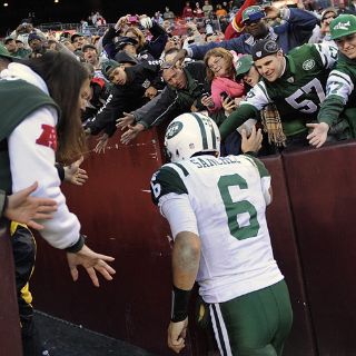 LANDOVER, MARYLAND (04/DIC/2011).- Mark Sánchez conectó el domingo con Santonio Holmes un pase para touchdown de 30 yardas a 4:49 del final y Shonn Greene afianzó la ventaja con dos anotaciones para llevar a los Jets de Nueva York a la victoria por 34-19 sobre los Pieles Rojas de Washington.