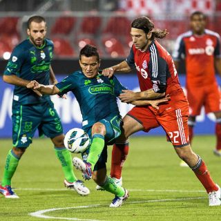 TORONTO, CANADÁ (28/AGO/2012).- El club de futbol Santos Laguna, actual campeón de México, goleó el martes como visitante a Toronto de Canadá por 3-1 en la Liga de Campeones de la Concacaf.